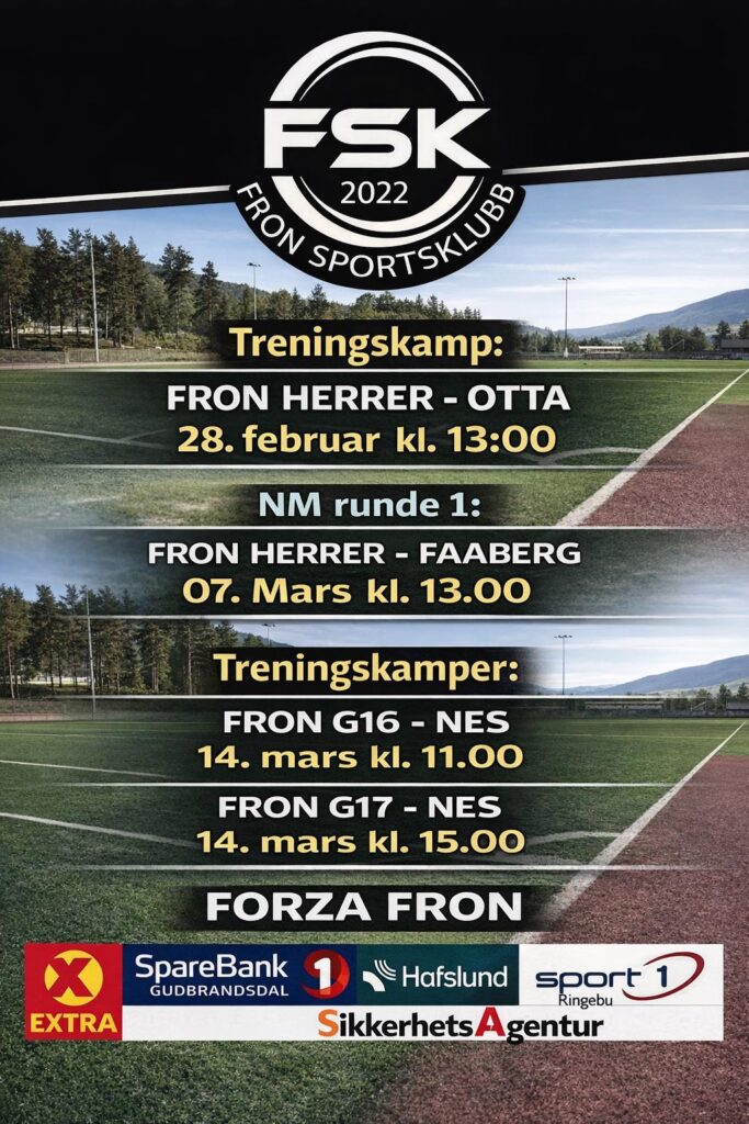 <p>Sted: Kåja Idrettsplass – nordre kunstgress<br />Lørdag 7. mars er det NM-kvalik fotball herrer på Vinstra!<br />Det er åpen kiosk og servering. Møt opp og hei fram ditt lag! </p>